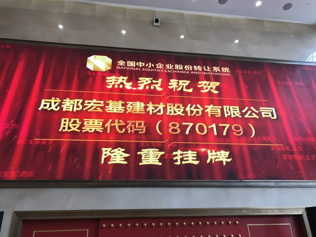2016年12月16日,成都宏基建材股份有限公司(以下简称“宏基股份”)在全国中小企业股份转让系统(简称“新三板”)正式挂牌,股票代码870179,成为成都地区第一家新三板挂牌的混凝土专业生产企业。2017年1月18日上午10:30,宏基股份挂牌仪式在北京全国中小企业股份转让系统成功举行。宏基股份董事长兼总裁吴逸云先生现场敲钟,成都市市政府副秘书长高建军、金融办主任梁其洲、宏基股份股东代表及公司员工代表共同出席挂牌仪式,见证了这一重要时刻。