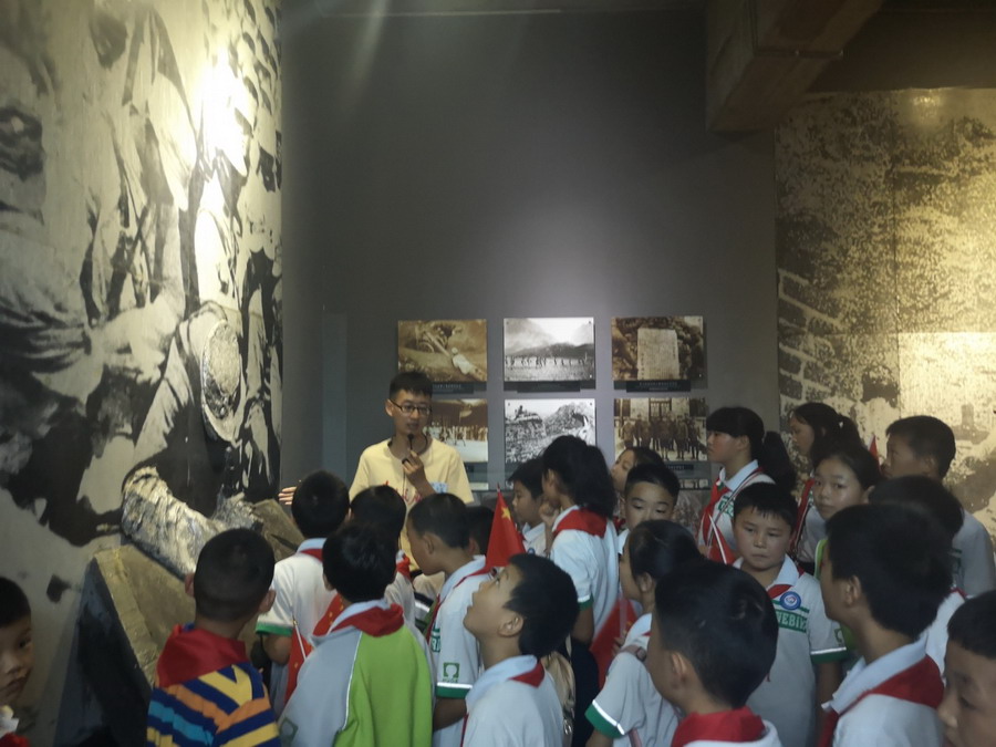 到达建川博物馆,学生们手里纷纷挥舞着鲜红的五星红旗,期待掀开历史的面纱。博物馆一进门的照壁,便阐述了建川的宗旨:“为了和平,收藏战争;为了未来,收藏教训;为了安宁,收藏灾难;为了传承,收藏民俗”。